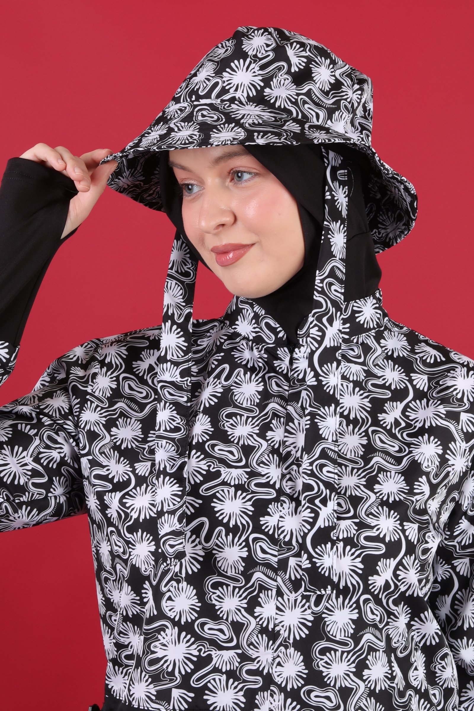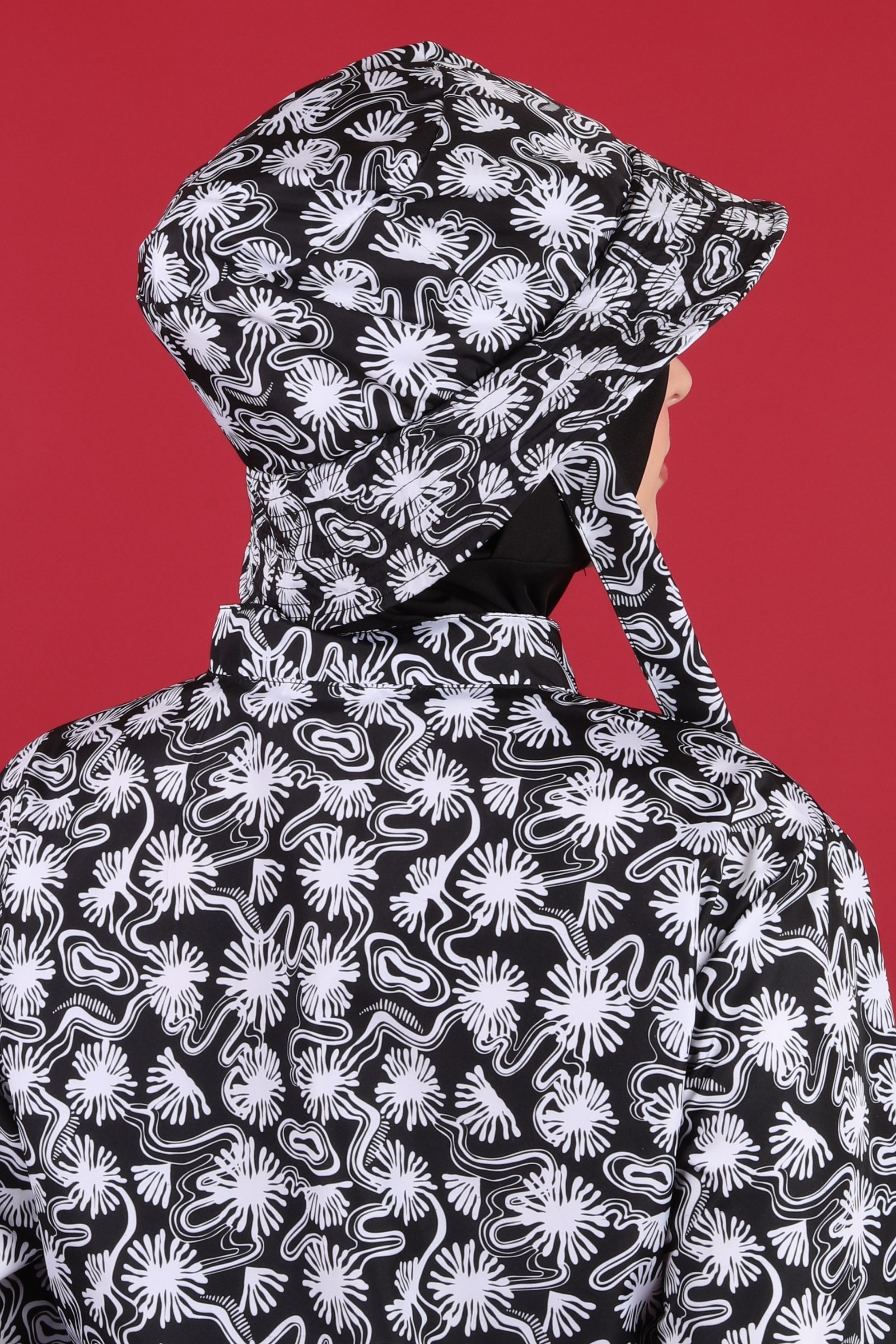 Siyah Soyut Desenli Tesettür Mayo Şapkası